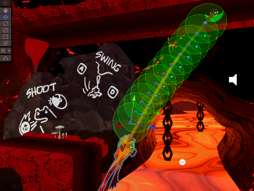 Picante’s tongue was designed around Unity’s Physics system. It is made by creating a chain of tongue links, each bound to the next with a hinge joint. This allows him to swing in midair in a controllable and easy-to-use fashion.